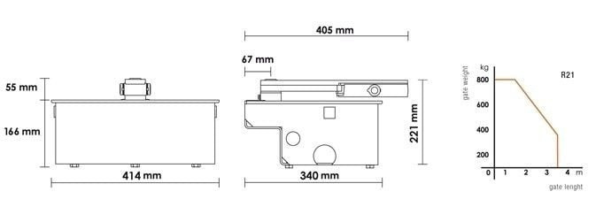 De roger ondergrondse opener kit R21/353 is een complete kit om een draaipoort tot 3,5 meter breedte en/of maximaal 800 kg. per vleugel mee te automatiseren(zie technische fiche) .