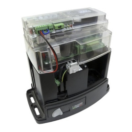 elektromechanische motor BRUSHLESS laagspanning, zeer intensief gebruik, met inheemse encoder aan boord, onomkeerbaar, ideaal voor schuifpoorten tot 1000 kg, met ingebouwde digitale controller serie B70. Compleet met bevestigingsvoet met trekstangen en magnetisch eindschakelaar. Met 2-kanaals radio-ontvanger aan boord.