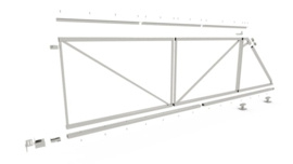 OverzichtComplete set vrijdragende schuifpoort 4.0 x 1.3 Incl. poortframe, excl. Poortbekleding.