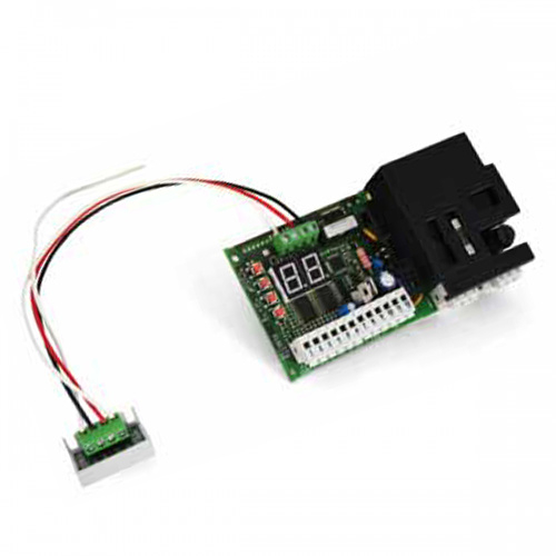 Proteco Q60S besturingsprint voor schuifpoorten. De besturingsprint kan gebruikt worden in combinatie met Proteco Meko en Movermotoren. De Q60S heeft een LCD-scherm voor het instellen alsmede feedback geeft (fout diagnose).