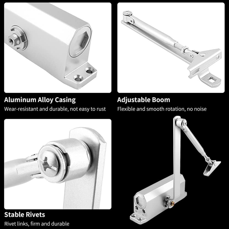 - Aluminiumlegering deursluiter: deze automatische deursluiter is gemaakt van een hoogwaardige aluminiumlegering, commercieel en vuurvast, hoge sterkte en hardheid, roestbestendig en hittebestendig, niet gemakkelijk te vervormen, vervormt niet gemakkelijk en beschadigt niet.