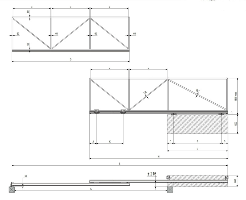 Complete set vrijdragende schuifpoort 4.0 x 1.5 Incl. poortframe, excl. Poortbekleding.